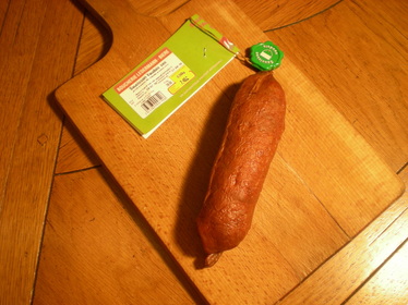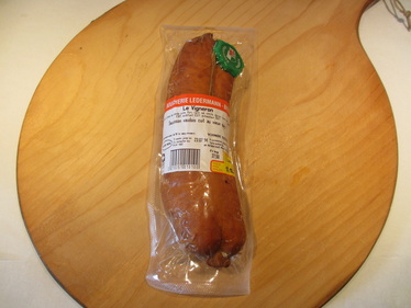 Faire bouillir de l’eau, éteindre le feu, mettre la saucisse dans l’eau et attendre 20 minutes.